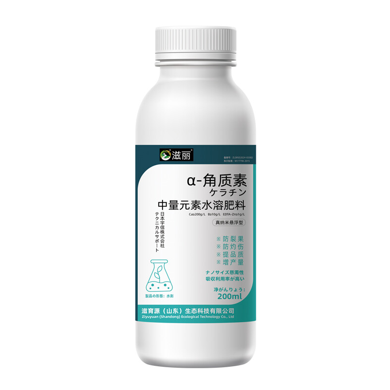 α-Keratin is developed through the cooperation between our company and Japan Useen Corporation . We use high-purity calcite as the raw material, which undergoes high-temperature calcination to enhance the activity of calcium. It is then formed through multi-stage purification and quantum polymerization technology. Various chelating agents are added during the polymerization process. The result is an amorphous, nanoscale particle calcium. Compared to traditional micron-scale calcium agents on the market, its active ingredients are higher. α-Keratin possesses excellent fineness and a high specific surface area, which is more conducive to plant absorption, with an absorption efficiency of over 95%.Not only does it increase cell wall thickness, preventing the occurrence of infectious diseases, but also enhances the thickness of the cuticle layer on leaves and fruits, providing excellent protection against sunburn spots. Moreover, it maximizes the retention of water in vacuoles, significantly improving drought resistance.